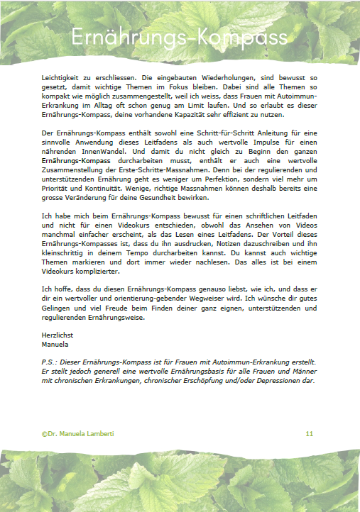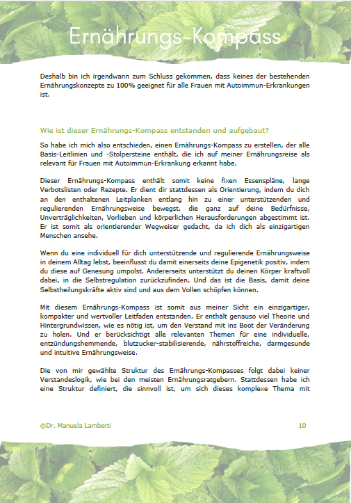 Wichtig: Dieser Ernährungs-Kompass ist für Frauen mit Autoimmun-Erkrankung erstellt. Er stellt jedoch generell eine wertvolle Ernährungsbasis für alle Frauen und Männer mit chronischen Erkrankungen, chronischer Erschöpfung und/oder Depressionen dar.